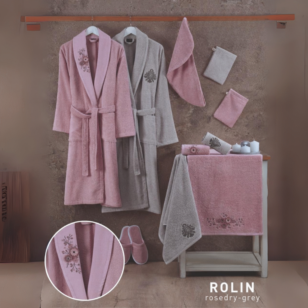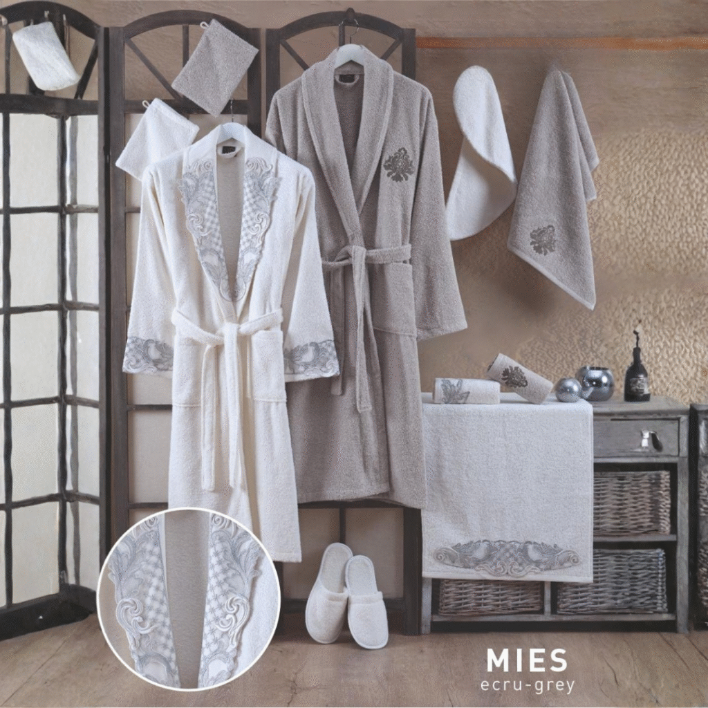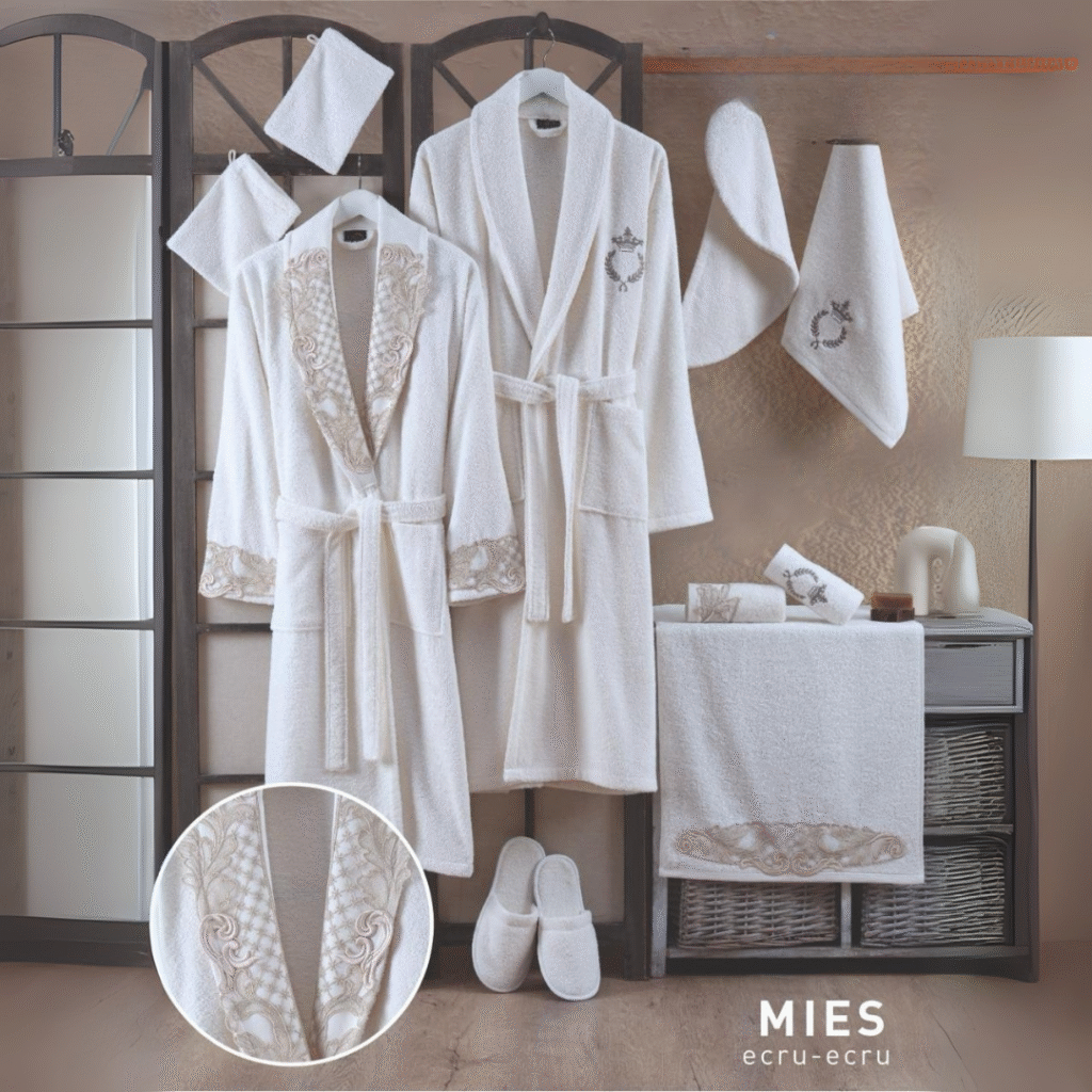 Calvo 13-Piece Royal Bathrobe Set – Premium Turkish Cotton with Lace & Embroidery