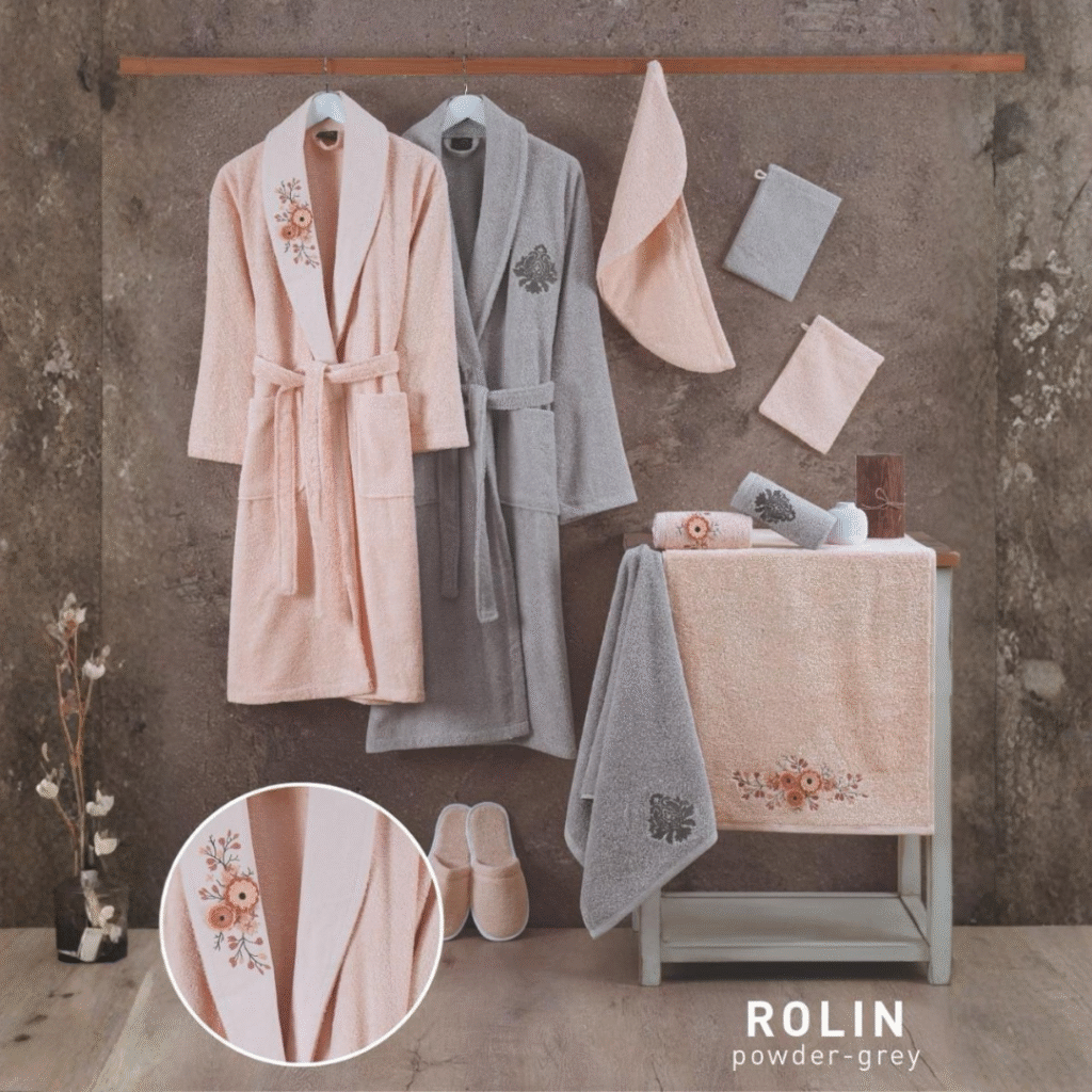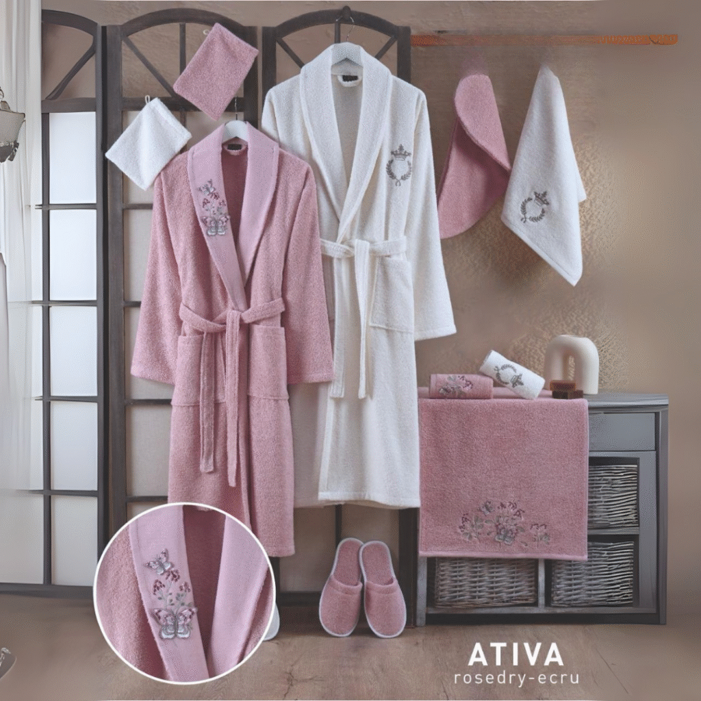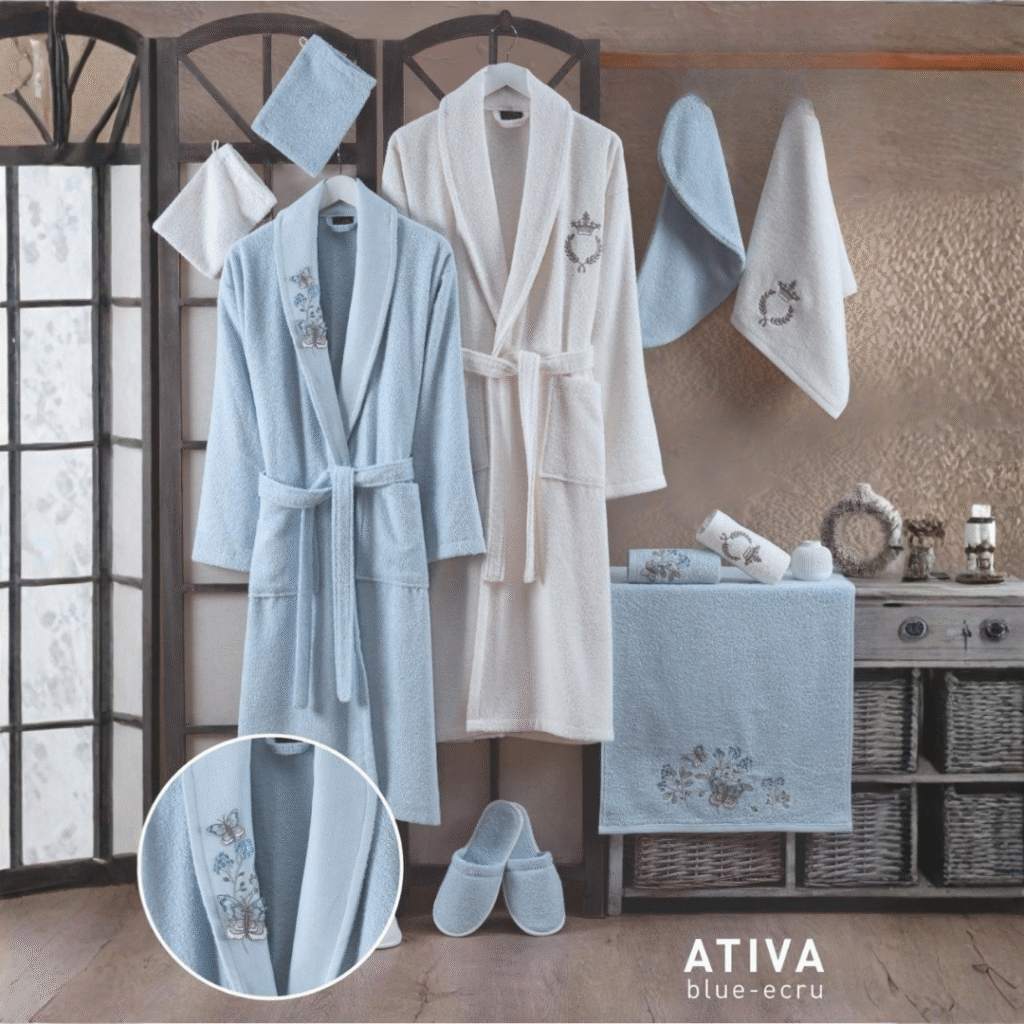 Calvo 13-Piece Royal Bathrobe Set – Premium Turkish Cotton with Lace & Embroidery