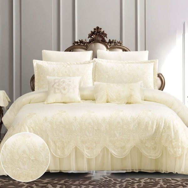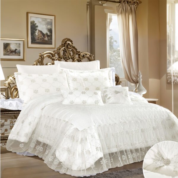 warm comforter set, composed of 9 cozy pieces for pure serenity. Set Includes: 1 Quilt 260x240cm 1 Fitted Sheet 200×200+30cm