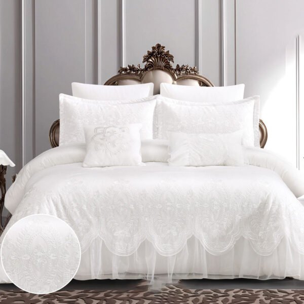 Enjoy lasting elegance and softness comforter set, featuring 6 perfect pieces. Set Includes: 1 Quilt 260x240cm 1 Fitted Sheet 200×200+30cm