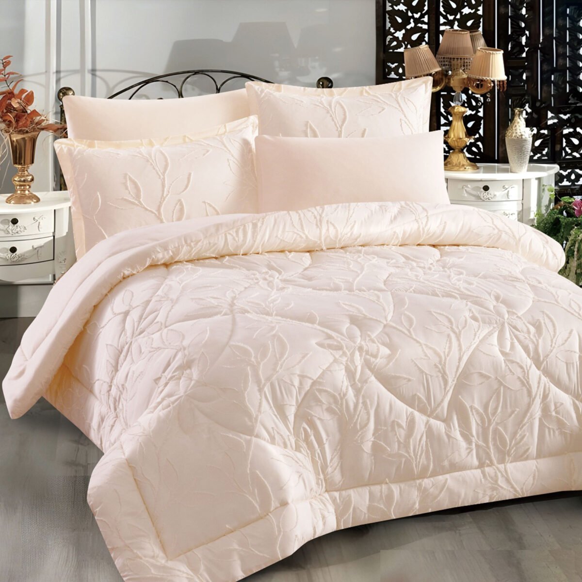Pamper your bed with a luxurious comforter set, including 6 pieces for a full sleep experience.